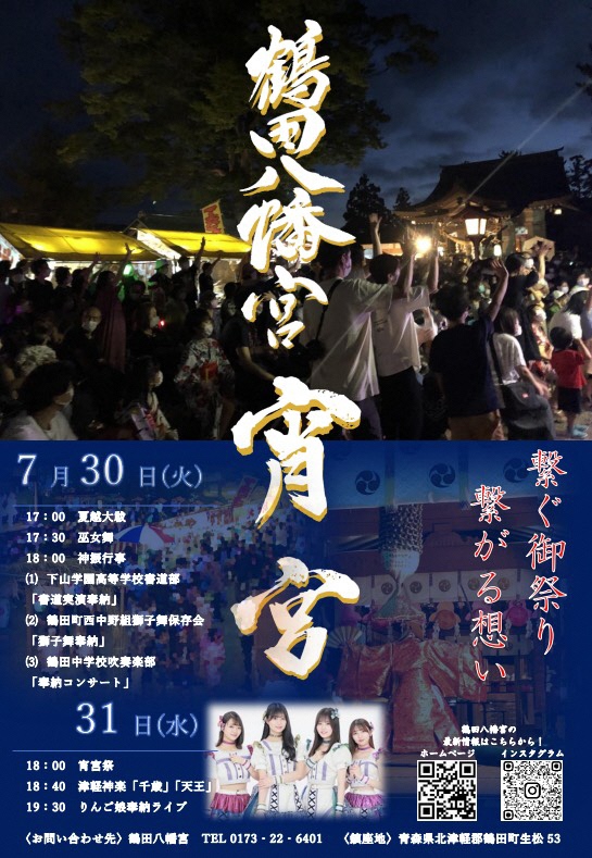 7月30日(火)、31日(水)に鶴田八幡宮宵宮が開催されます。