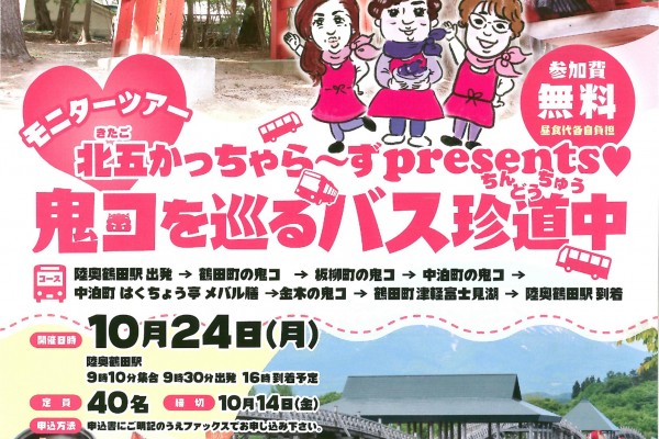 10月24日(月)「北五かっちゃらーずpresents鬼コを巡るバス珍道中」モニターツアーが開催...続きを見る