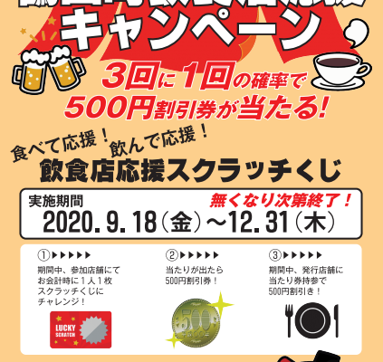 鶴田町内の対象飲食店で9/18~12/31までの間、飲食店応援キャンペーンを実施中です!